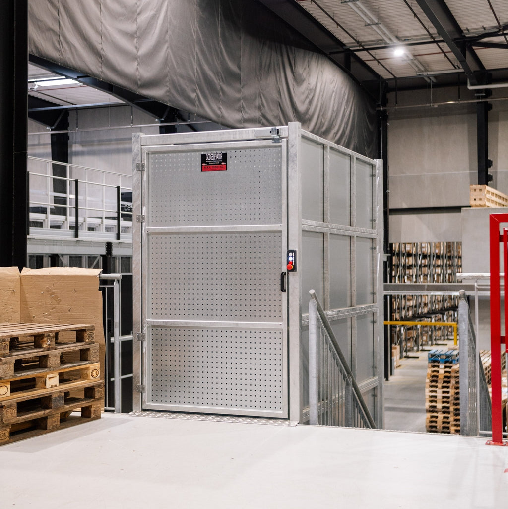Bilden visar en varuhiss i ett distributionscenter där lyftbordet används - men med en ökning av bordsskivan till 2500x1200 mm.